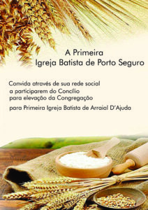 Concílio de Emancipação da Congregação Batista em Arraial D’Ajuda. Local: Rua das Palmeiras, nº 82, Bairro São Francisco – Arraial D’Ajuda, Porto Seguro – BA. Data: 20 de setembro de 2025. Horário: 15 h