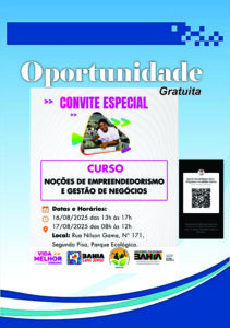 O Programa Vida Melhor Urbano convida você para participar do curso Noções de Empreendedorismo e Gestão de Negócios!