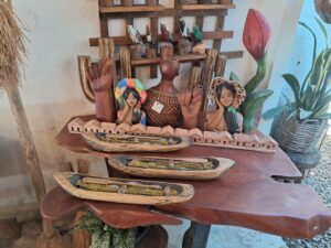 Herbert – Lembra que ele é filho de sapateiro, e que seu pai viu num menino de um amigo do interior muito talento, levando esse jovem para Itabuna, esse rapaz cresceu na profissão e montou seu próprio negócio com couros em peças artísticas, o pai de Herbert secretamente propôs ao amigo, que levasse Herbert como aprendiz, que ele seria o responsável em repassar o valor que ele pagaria a Herbert, sendo assim, a ministração de um curso prático, esta história ficou sendo um segredo até que muitos anos mais tarde, a família descobriu nas anotações contábeis, o registro de pagamentos periódicos. Percebendo que seu pai mesmo sendo profissional reconheceu no amigo, maior habilidade de ensinar a arte da sapataria e também do couro artístico, sendo um verdadeiro desingner. De vestuário e utilitários em couro. E então transformou-se numa fonte de chama viva de criatividade e em seu peito crescia a necessidade de vir para o litoral buscar novas experiências e formas de expressar seus sentimentos, emoções, sonhos e desejos. Enquanto não pulou no desconhecido buscou trabalhar em Itabuna com tinta automotiva, mas a insatisfação explodiu em sua mente. Assim vindo para Arraial da Ajuda onde percebeu ao seu redor o que poderia fazer, adaptou seu talento para os recursos que encontrou e aí surgiram as competências com palet’s e palhas.