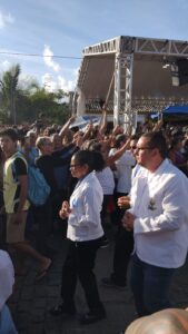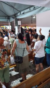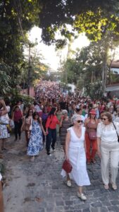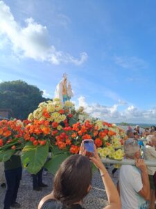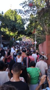 O nossa repórter Tatiane Brito, paroquiana e participante, registrou os momentos da procissão, onde se misturam gratidão e fé, muitas pessoas manifestam a gratidão pelas graças obtidas e outras pessoas manifestam a fé de receberem benções pedidas, outras ainda fazem parte como demonstração devoção e participação comunitária.