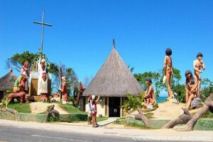 Na cidade de Santa Cruz Cabrália em grande concentração de aldeias Indígenas, onde se tem o Bairro de Coroa Vermelha, que é o Povoamento Indígena mais urbano do país. Contempla um calçadão Indígena, Museu Indígena e vai até a área da primeira missa celebrada no Brasil.